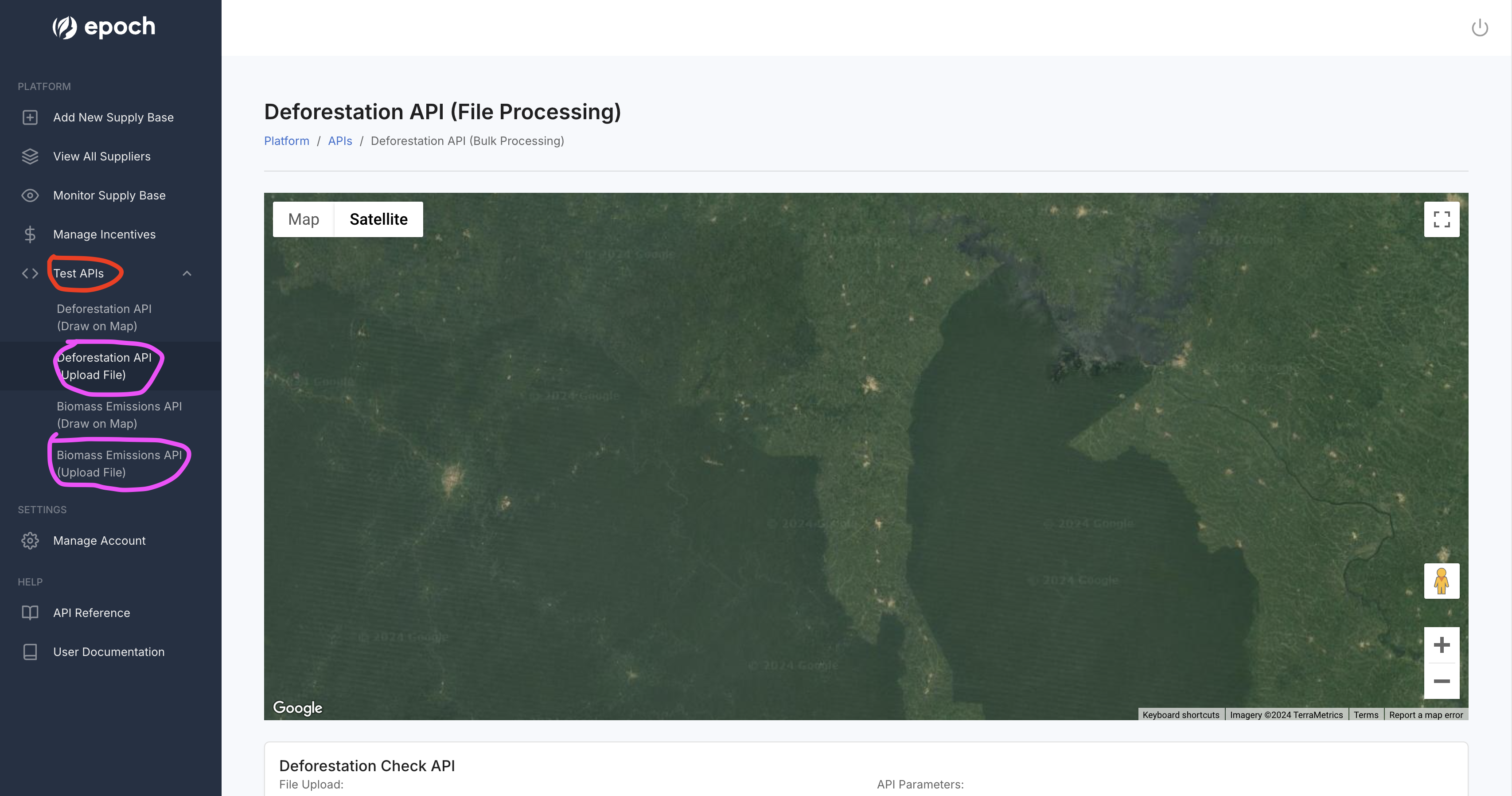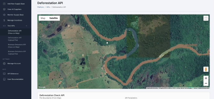 Once you are logged in, the fastest way to testing the APIs on your plot data is to upload a geojson under the "Test APIs" tab in the dashboard.