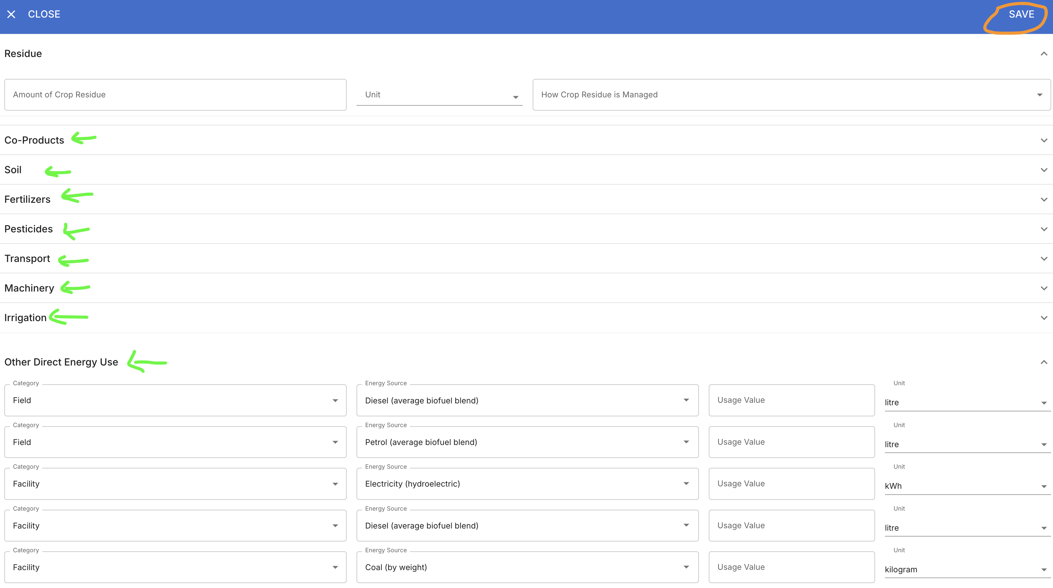 - The input payload in the structure of the Cool Farm Tool payload