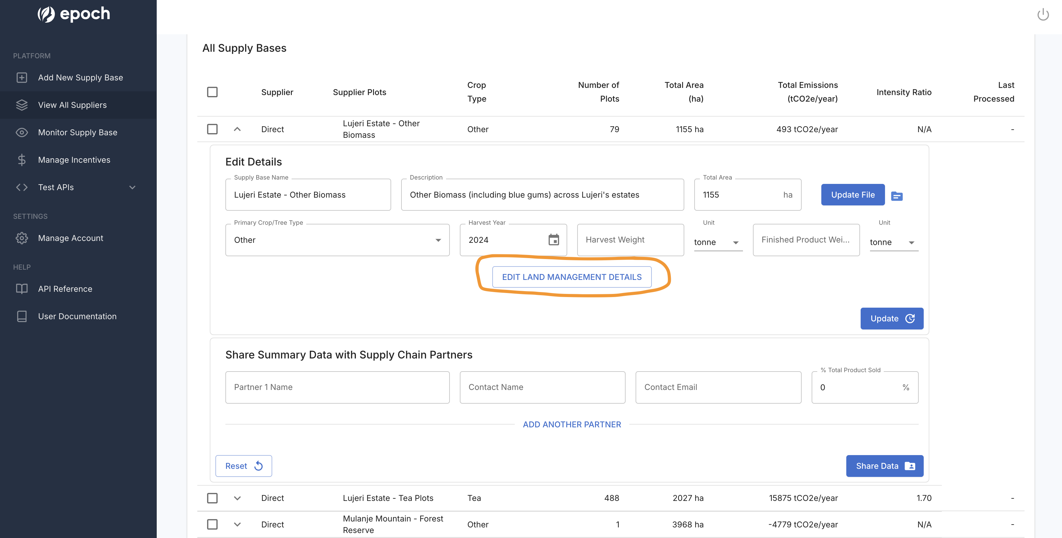 Click on the Edit Land Management Details button to open the form.