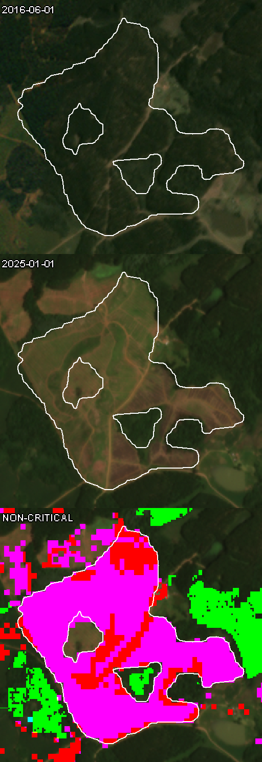 - Middle Panel (After): Shows the satellite imagery from the end of the monitoring period, allowing you to visually compare changes over time